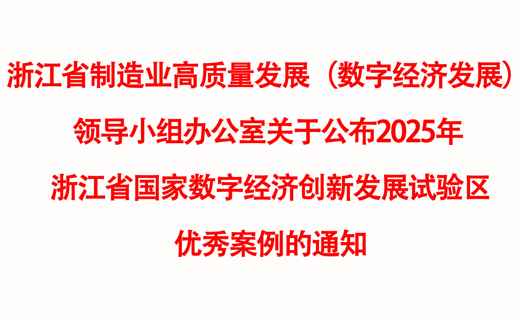 浙江省制造业高质量发展(数字经济发展) 领导小组办公室关于公布2025年 浙江省国家数字经济创新发展 试验区优秀案例的通知