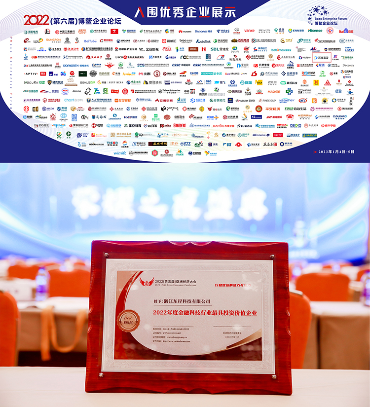 2023年1月5日,以“再出发 向高质量发展迈进”为主题的2022年博鳌企业论坛暨亚洲经济大会在海南三亚成功举办。此次大会揭晓了2022年度优秀企业榜单,浙商经济发展理事会主席团副主席单位--浙江东岸科技有限公司(简称“东岸科技”)凭借在投资回报率、科技创新力、行业影响力及市场发展潜力等方面的优势,成功入围优秀企业榜单,并荣获“2022年度金融科技行业最具投资价值企业”奖项。