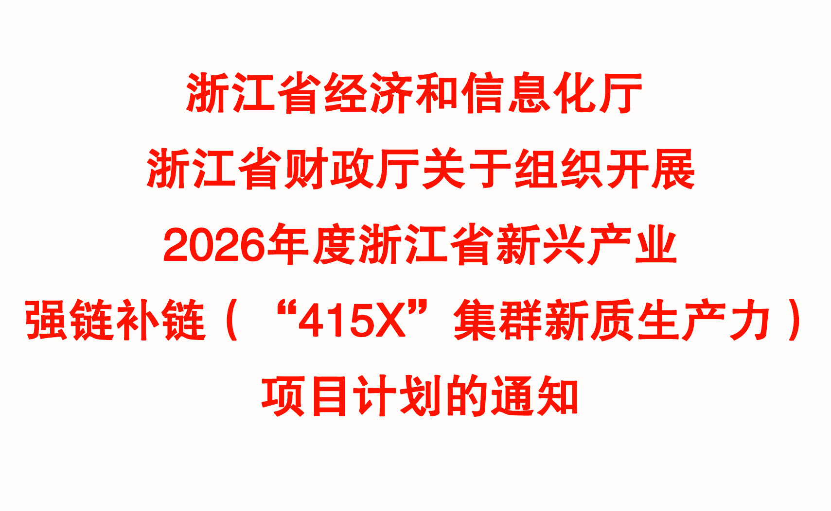浙江省经济和信息化厅 浙江省财政厅关于组织开展2026年度浙江省新兴产业强链补链(“415X”集群新质生产力)项目计划的通知