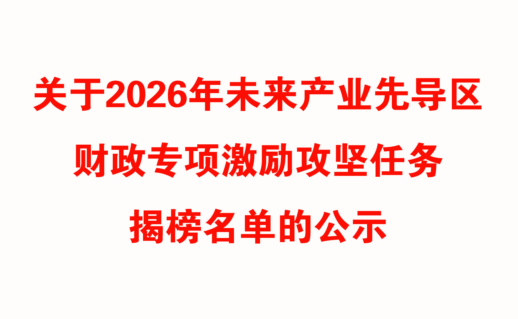 关于2026年未来产业先导区财政专项激励攻坚任务揭榜名单的公示
